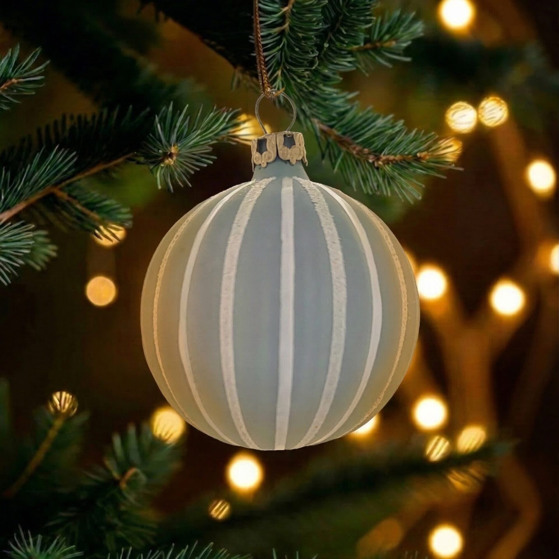 Unser „Center goes on“ – Set strahlt in der Winter- und Weihnachtszeit eine kühle Eleganz aus. Die Weihnachtskugeln sind in einem soften blau matt und strahlen ebenfalls Vertrauen und Ruhe aus. Die Kugeln aus Glas sind mit einer weißen Rille von Hand verziert und geben damit nochmal einen sehr edlen Look in deinem Weihnachtsbaum ab. Durch ihre Helligkeit fallen sie stark auf und sind ein toller Hingucker. So kühl die Farbe es auch wirken lässt, kann man sie prima mit warmen Farben zusammen kombinieren. Unser „Cotton Candy“ – Set wäre da vielleicht etwas für dich. Voller Gemütlichkeit funkelt dein ganzer Weihnachtsbaum und lässt die Freude deiner Familie und Freunde erblicken. Unsere Weihnachtskugeln sind zum aufhängen. Sie sind aus mundgeblasenem Glas und in Deutschland hergestellt. Sie lassen sich auch sehr einfach reinigen und sind durch ihre hochwertige Verarbeitung sehr langlebig.