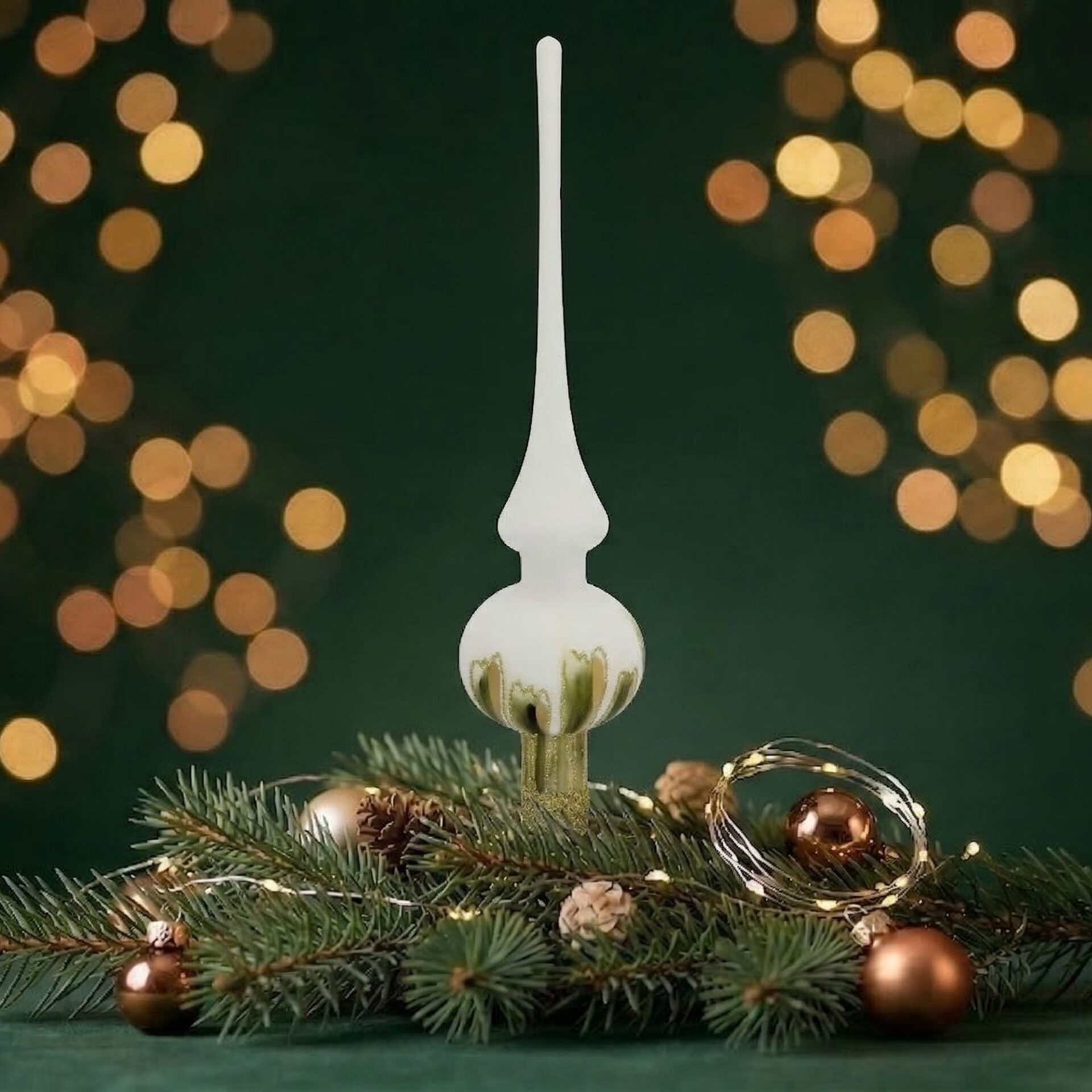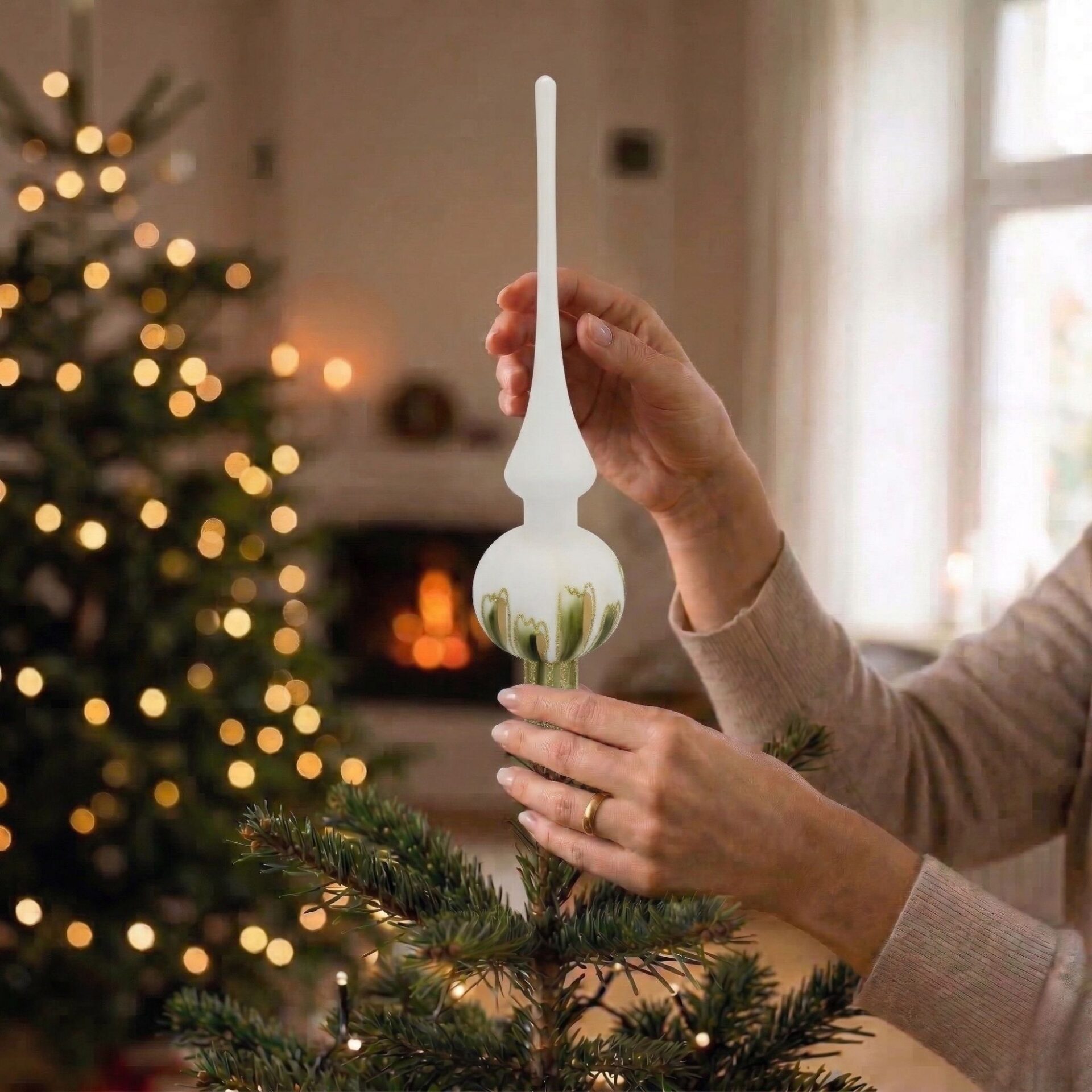 Die Emerald Glory Spitze aus Glas begeistert durch ihre edle, tiefgrüne Farbgebung und fein ausgearbeitete Struktur. Sie verleiht deiner Weihnachtsdekoration eine besondere Eleganz und einen Hauch von luxuriösem Glanz.