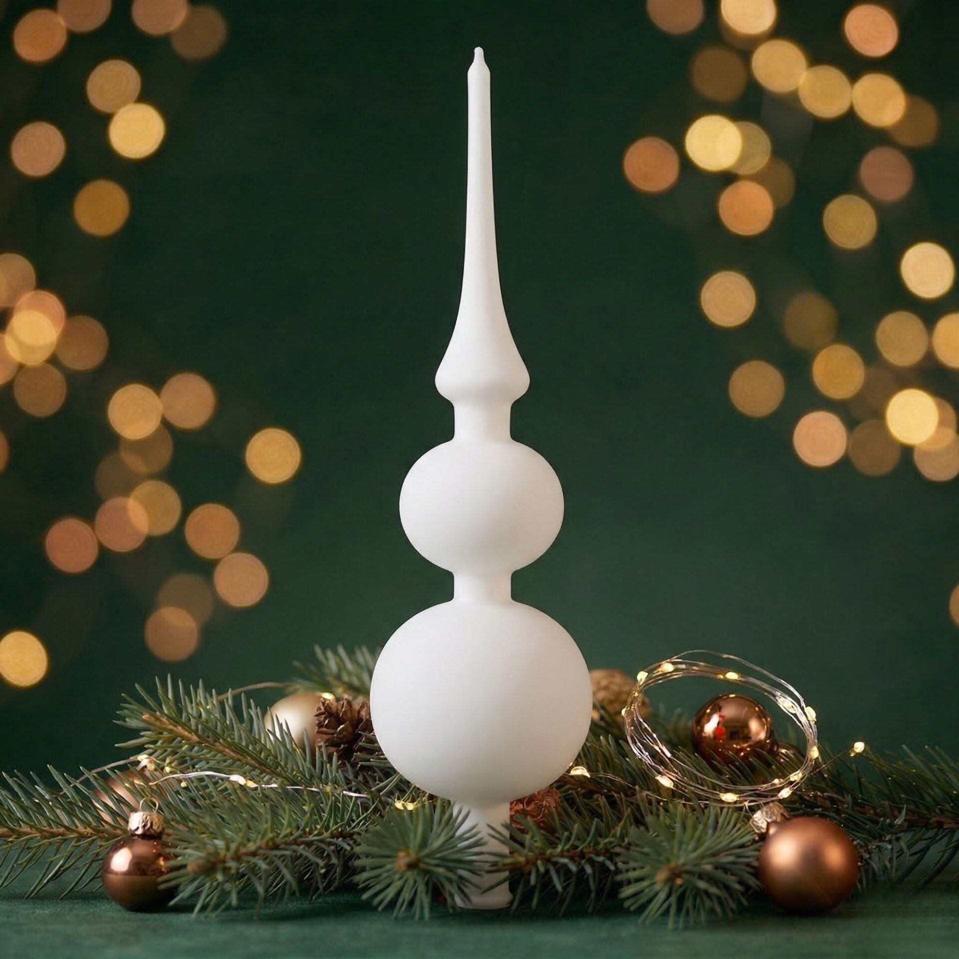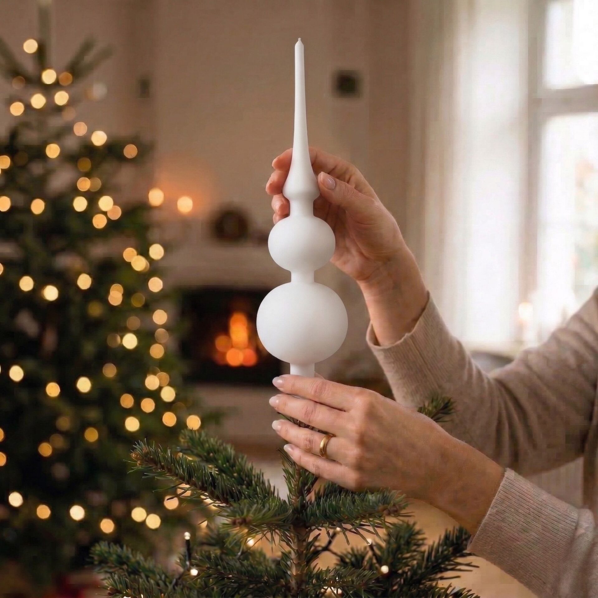 Passend zu den Kugeln, besticht diese 31 cm große Spitze in Softweiß matt durch pure Eleganz und Schlichtheit. Ein krönender Anschluss für deinen Weihnachtsbaum.
