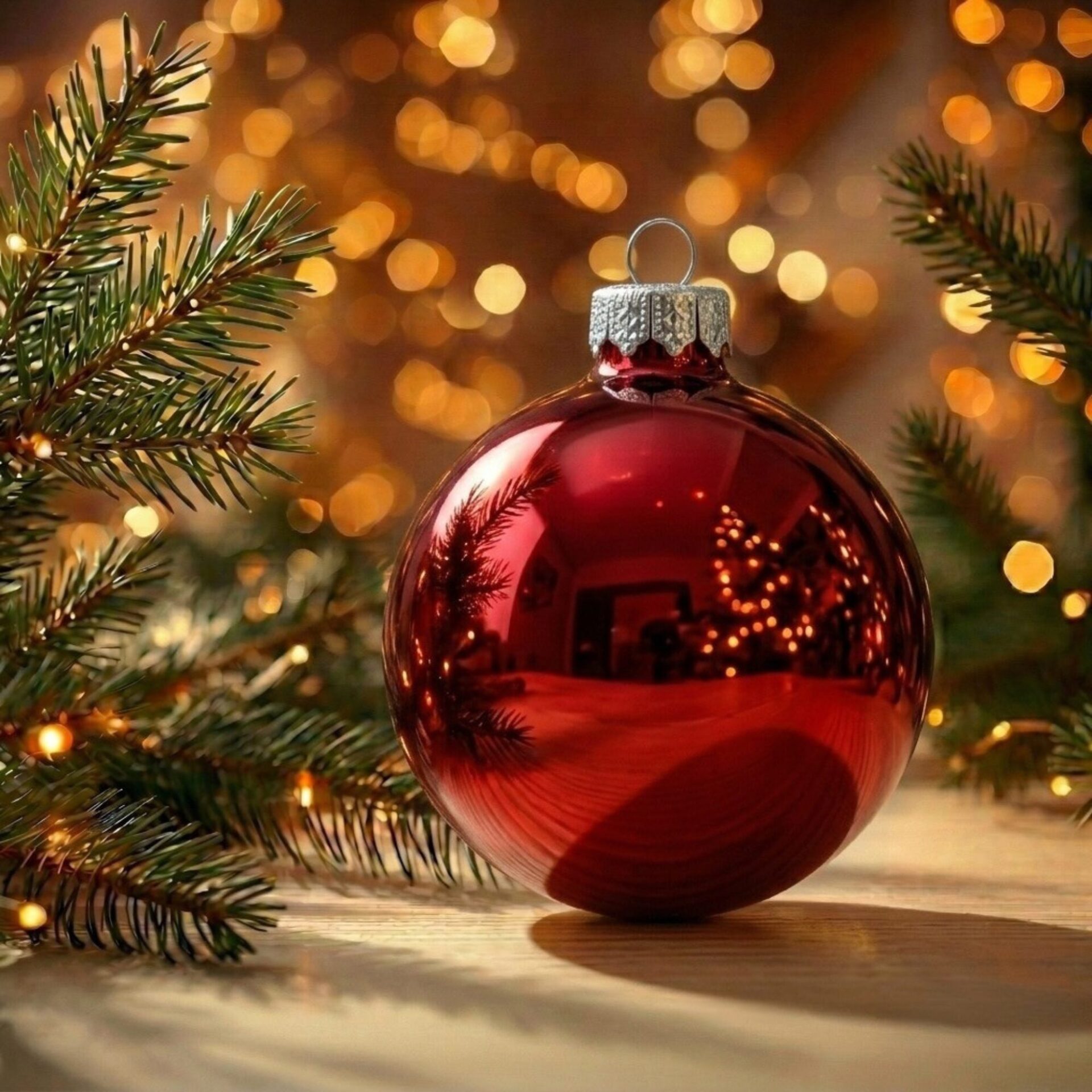 „holy christmas“ – 8 cm Weihnachtskugeln rot hochglanz