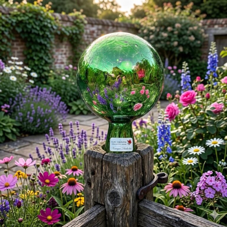 Elegante Rosenkugel Venezia Mini in Smaragdgrün mit 9 cm Durchmesser. Die glänzende Glaskugel setzt stilvolle und natürliche Akzente im Garten, auf der Terrasse oder im Blumentopf. -