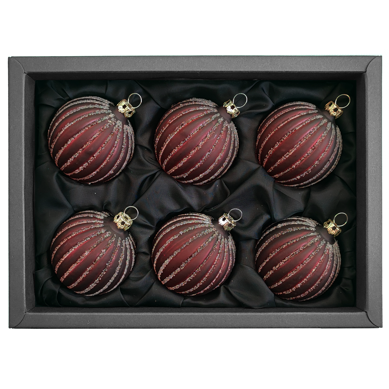 Dieses Set besteht aus 6 Kugeln à 6 cm in einem transparenten Rotton. „christmas lightning“ ist durchscheinend und durch die zusätzlichen kleinen Glasperlen lassen sich die Lichter am Weihnachtsbaum wunderschön vervielfältigen.