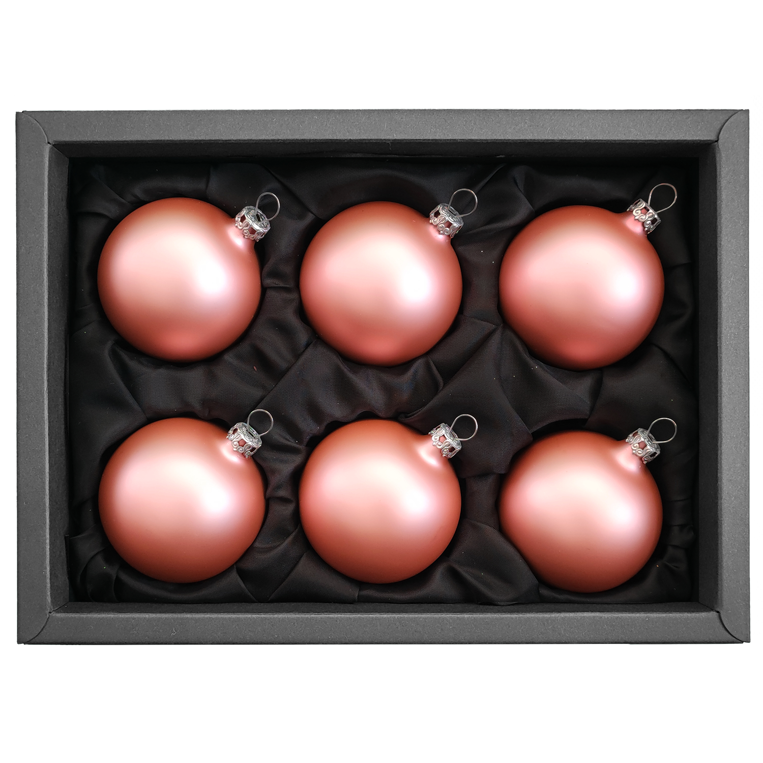 Dieses Set, bestehend aus 6 Kugeln à 6 cm in einem zarten Rosé-Ton, taucht deinen Weihnachtsbaum ganz sanft in eine Traumwelt, ohne den Glanz der Weihnacht zu verlieren. Modern clean und dennoch elegant.