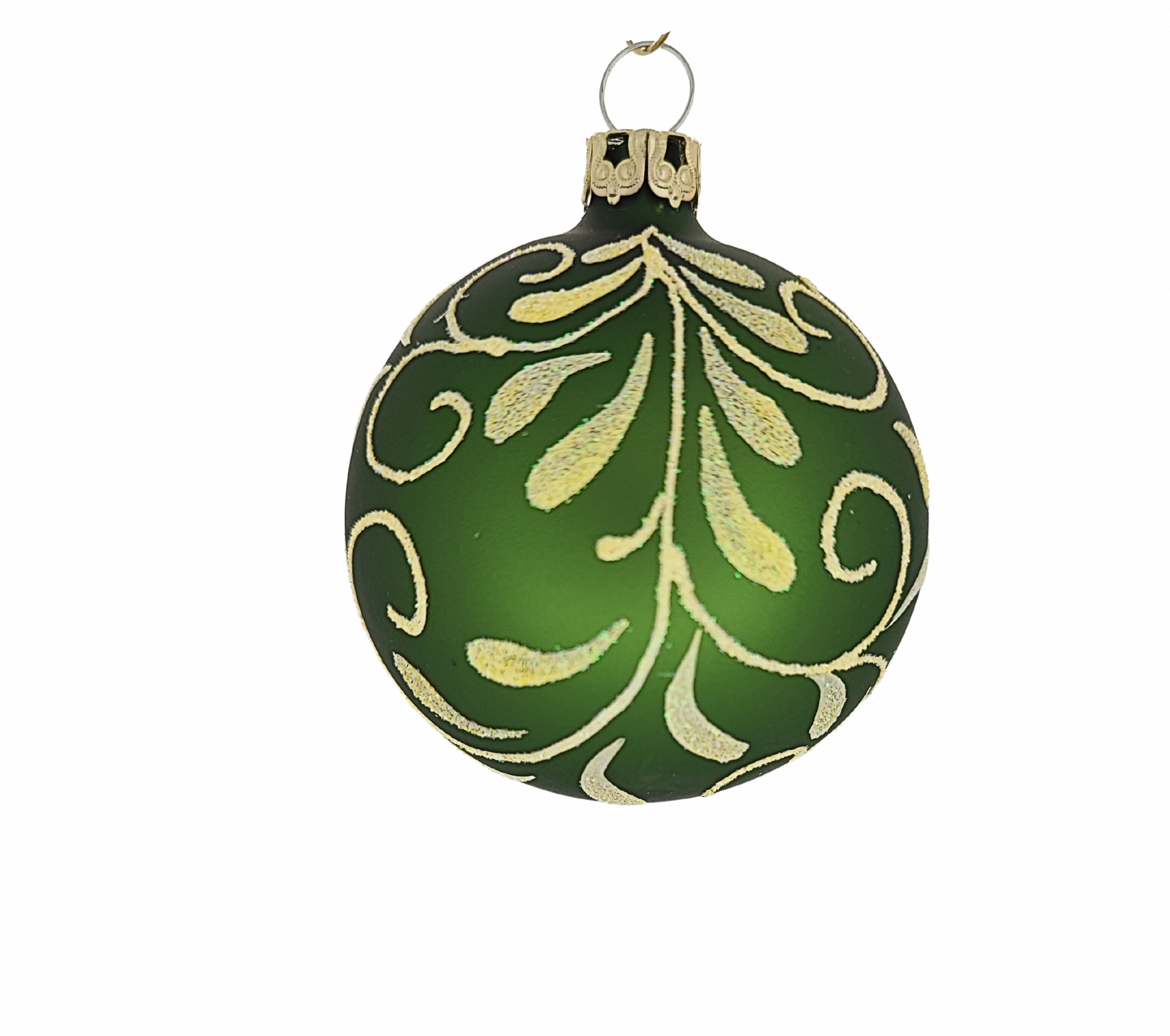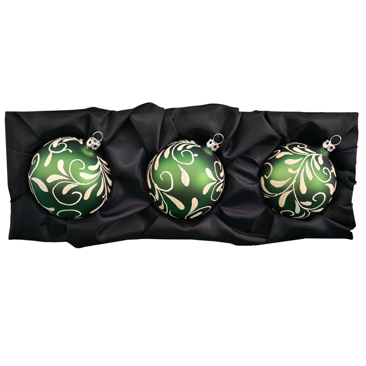 Dieses Set, bestehend aus 3 Kugeln à 8 cm in einem matten Grün, besticht durch sein florales Design und zaubert ein elegantes Highlight an deinen Baum.