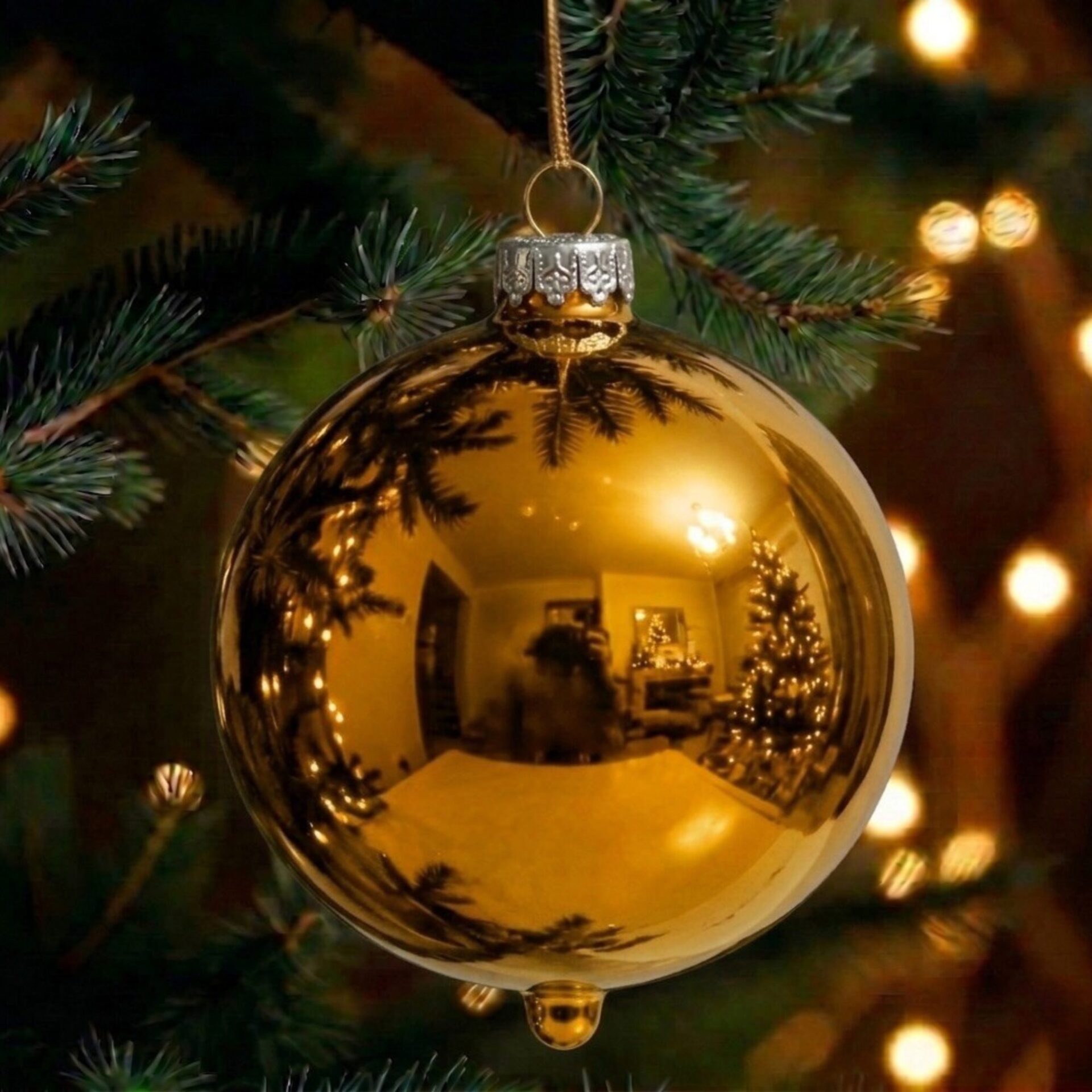Das "golden christmas" - Set besteht aus 6 hochglanz golden Kugeln. Durch ihre markante Eigenschaft fallen sie besonders gut auf. Die Weihnachtskugeln á 6 cm sind aus mundgeblasenem Glas und werden in Deutschland hergestellt.