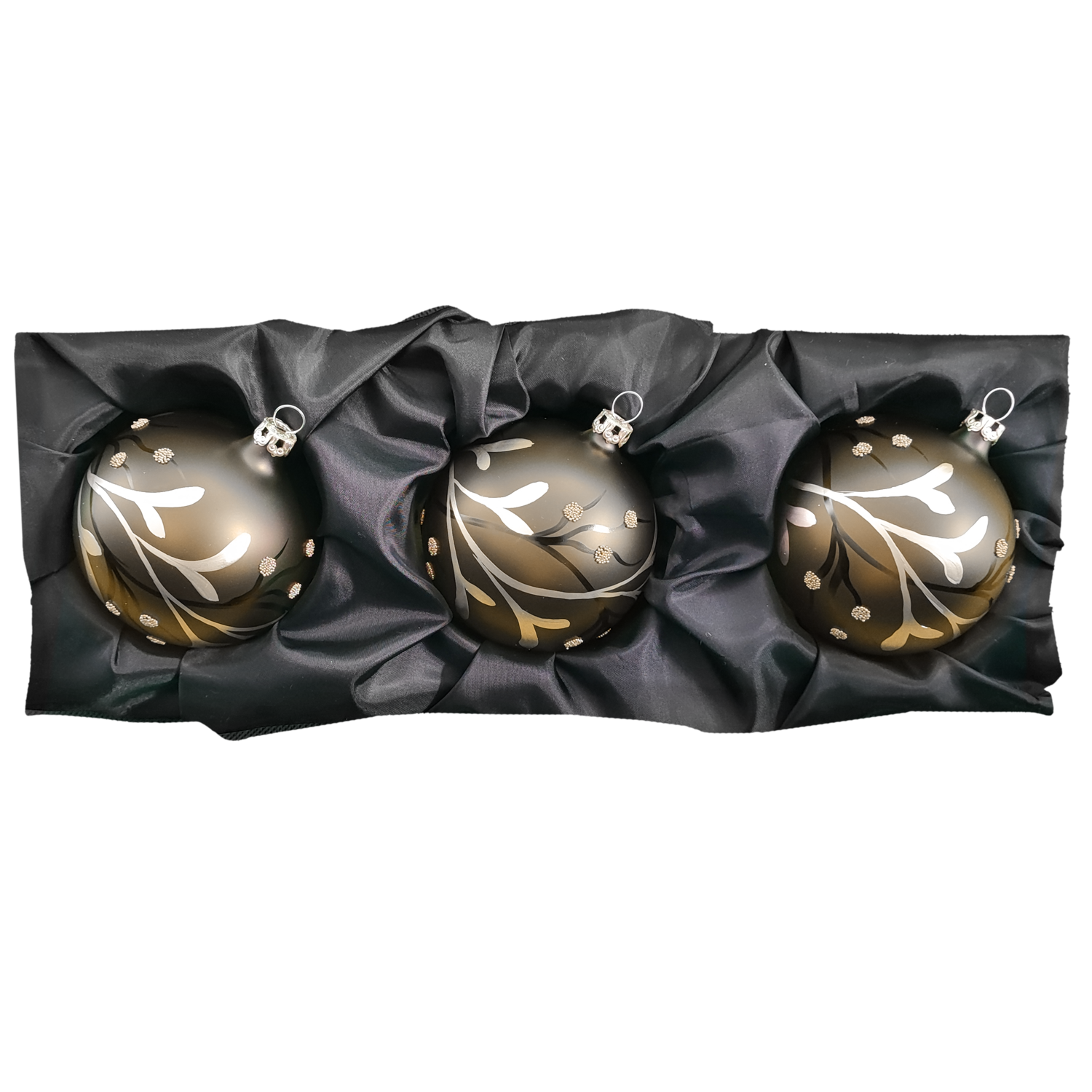 Dieses Set, bestehend aus 3 Kugeln à 8 cm in transparentem Khaki-Grün, besticht mit seinem Rankendesign und seiner Schlichtheit, die jedoch nichts an Schönheit einbüßt.