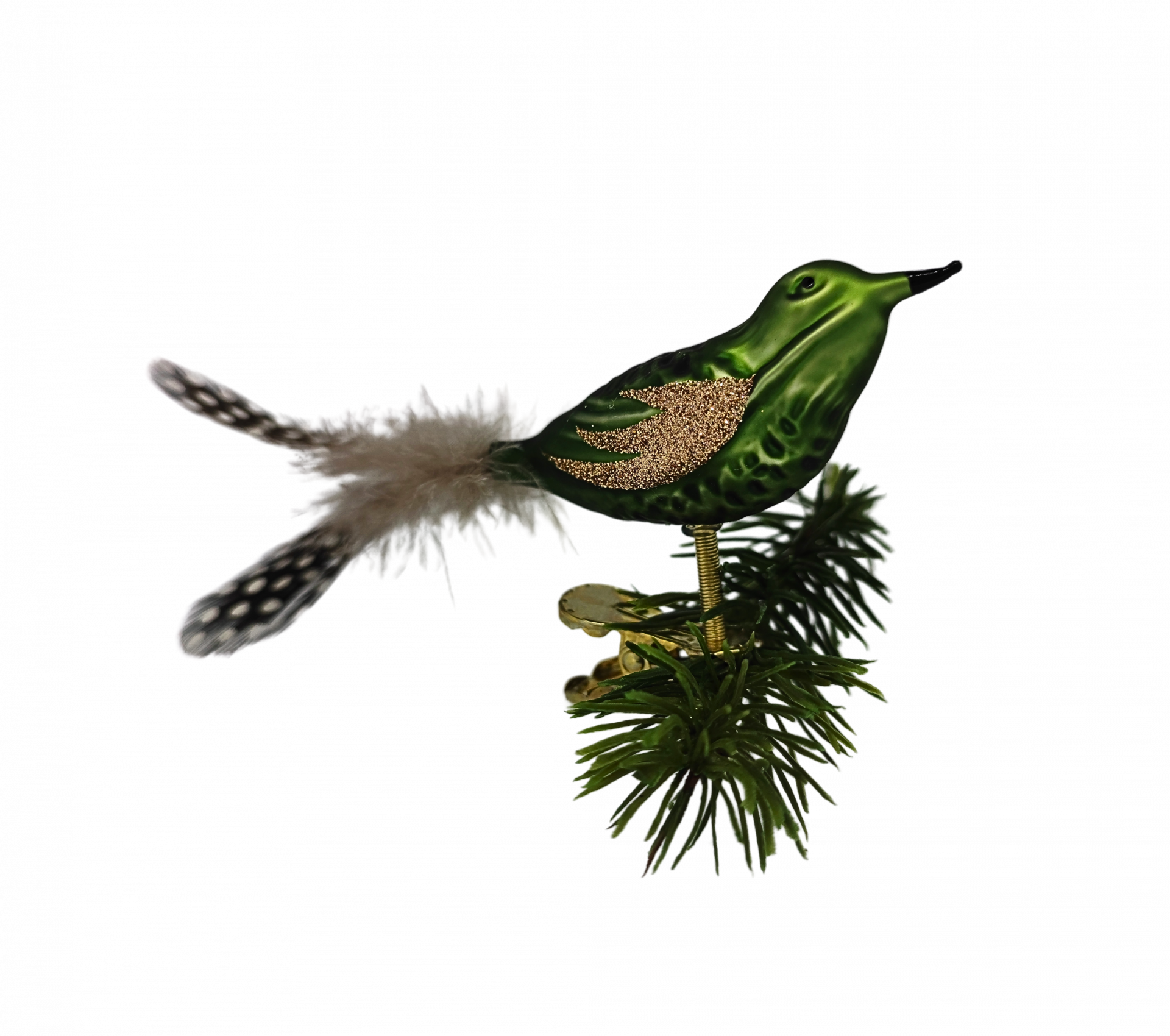 Das „Nature little Friend“ – Vögelchen Set ist in einem schönen matten Grünton und hat seitlich ein kleinen Stich im Flügelbereich der Farbe braun mit drinnen. Darin hebt sich auch die wundervolle Feder ab die in diesen Braunton ebenfalls versehen ist. Außerdem ist die Feder weiß gefleckt und schaut somit sehr einzigartig aus. Sie ist in den Farbtönen dem Tannenbaum sehr nah und dennoch fallen sie sehr gut in ihren Naturfreund auf. Die Vögelchen setzen zu jederzeit in deiner Weihnachtsdeko einen tollen Akzent ab. Du kannst den Christbaumschmuck individuell einsetzen und deinen Gedanken beim Dekorieren freien lauf lassen und sie sind auch nicht nur zur Weihnachtszeit ein toller Hingucker! Das Vögelchen – Set besteht aus 2 Stück und du kannst sie ganz einfach anklemmen. Sie sind aus mundgeblasenem Glas und von Hand verziert. Unsere Produkte sind sehr hochwertig in Deutschland hergestellt und damit auch sehr langlebig.