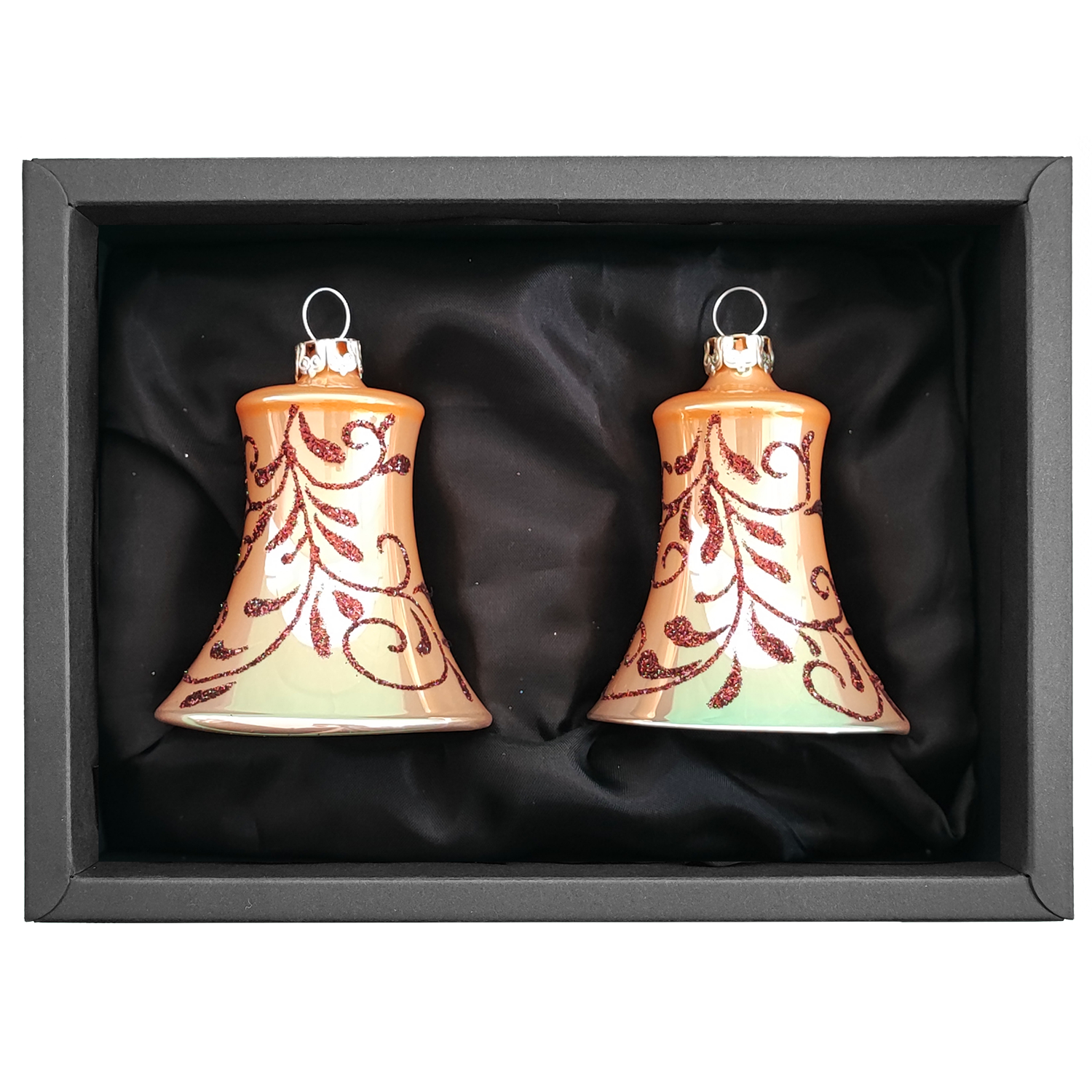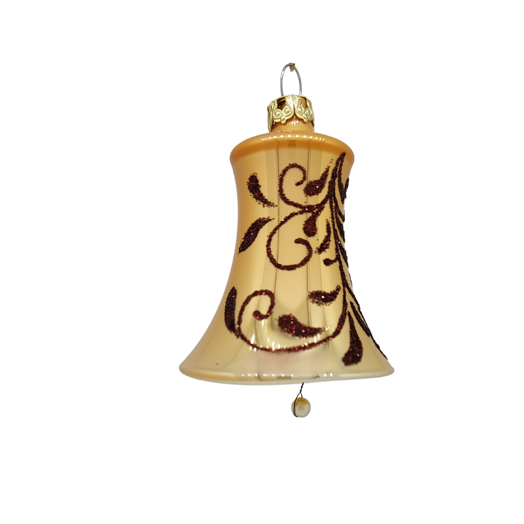 Dieses Glocken-Set ,bestehend aus zwei 5 cm großen Glocken, lässt deinen Weihnachtsbaum in einem sinnlichen hellen Karamellton mit zartem Blüten-Design erstrahlen. Als optimale Ergänzung zu den Kugeln und der Spitze der „Nature Spirit“ Collection.