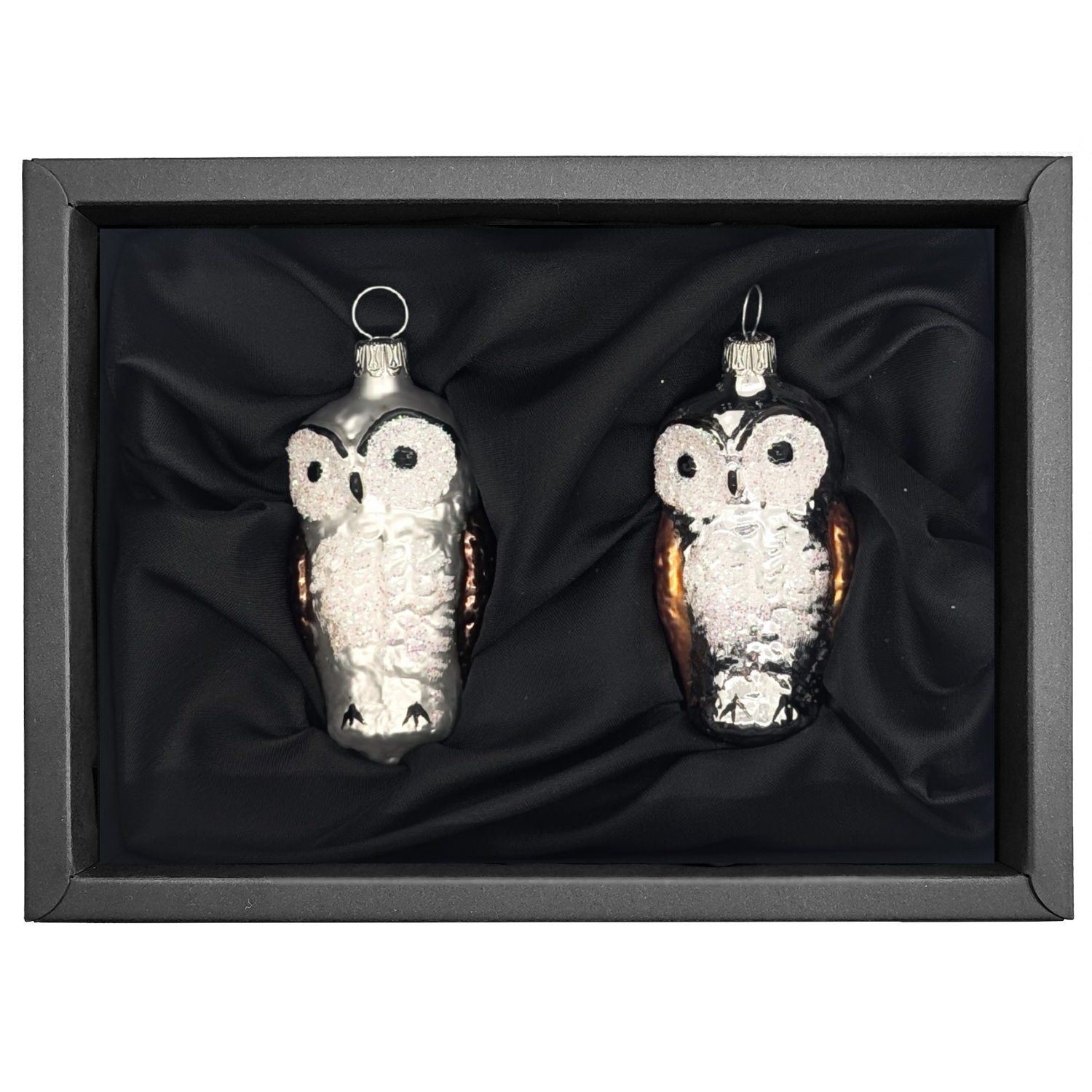Dieses wunderschöne Pärchen „owls in love“ besteht aus zwei 6cm großen Eulen. Eine trägt ein hellbraunes Flügelkleid und die andere ein dunkelbraunes Flügelkleid. Als Geschenk für ein liebendes Paar geben diese Eulen ein wunderschönes Bild im Tannenbaum oder als Geschenk für die Lieben zum Weihnachtsfest.