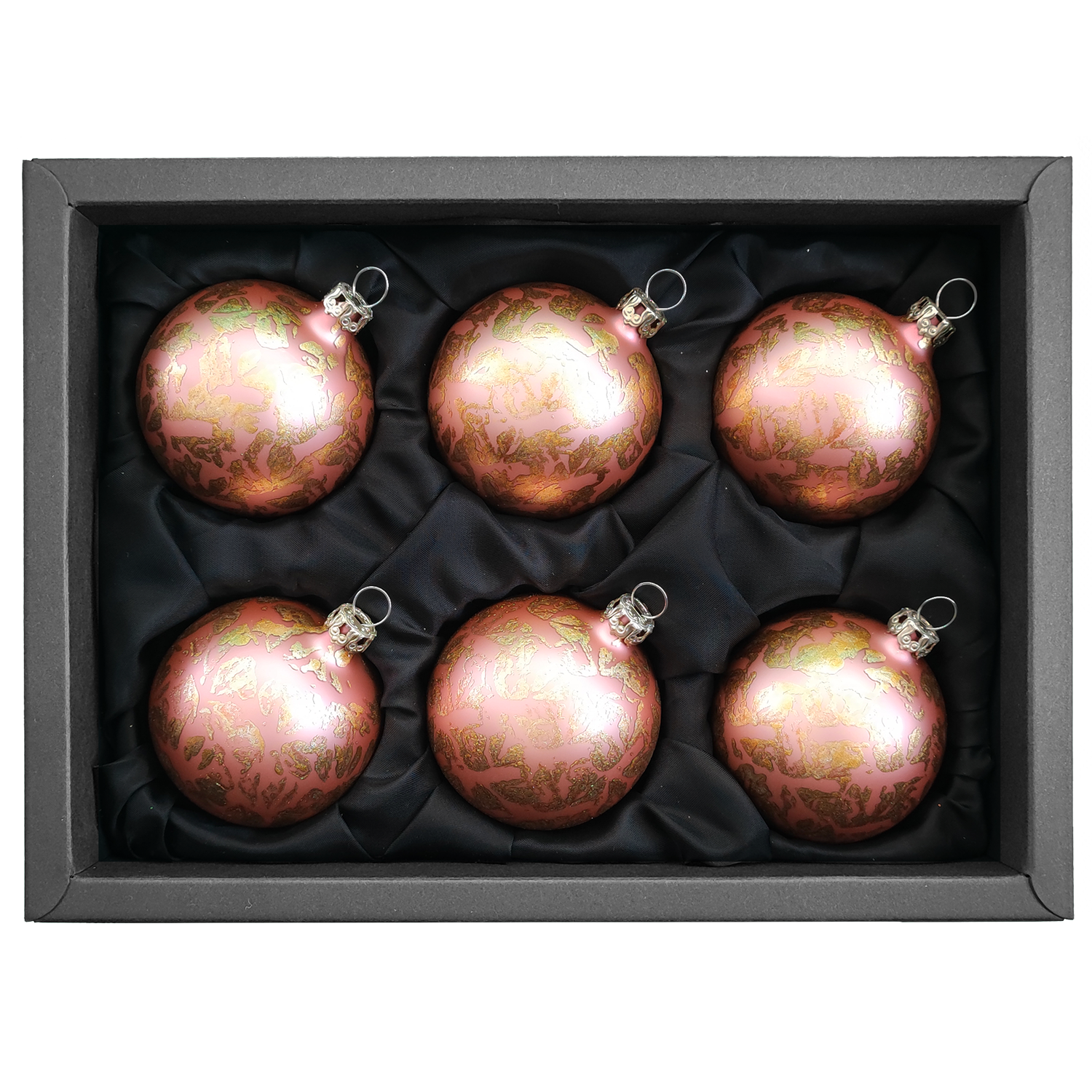 Christbaumkugeln und Ornamente aus Glas sind eine wunderbare Möglichkeit, um Ihren Weihnachtsbaum oder Ihre Weihnachtsdekoration zu verschönern. Diese mundgeblasenen und handverzierten Glas Christbaumkugeln 6 cm in Rosé Matt mit einem Softeffekt Design sind ein einzigartiger Weg, um Ihren Baum zum Leuchten zu bringen. Diese Glas Christbaumkugeln haben ein weiches, mattes Rosé-Finish, das sich wunderbar von dem weihnachtlichen Tannengrün einfügen lässt. Die Kugeln sind von Hand verziert, wodurch jede einzelne einzigartig ist. Jede Kugel ist mit einem zarten goldenen Muster verziert, dass einen weichen, romantischen Look erzeugt.