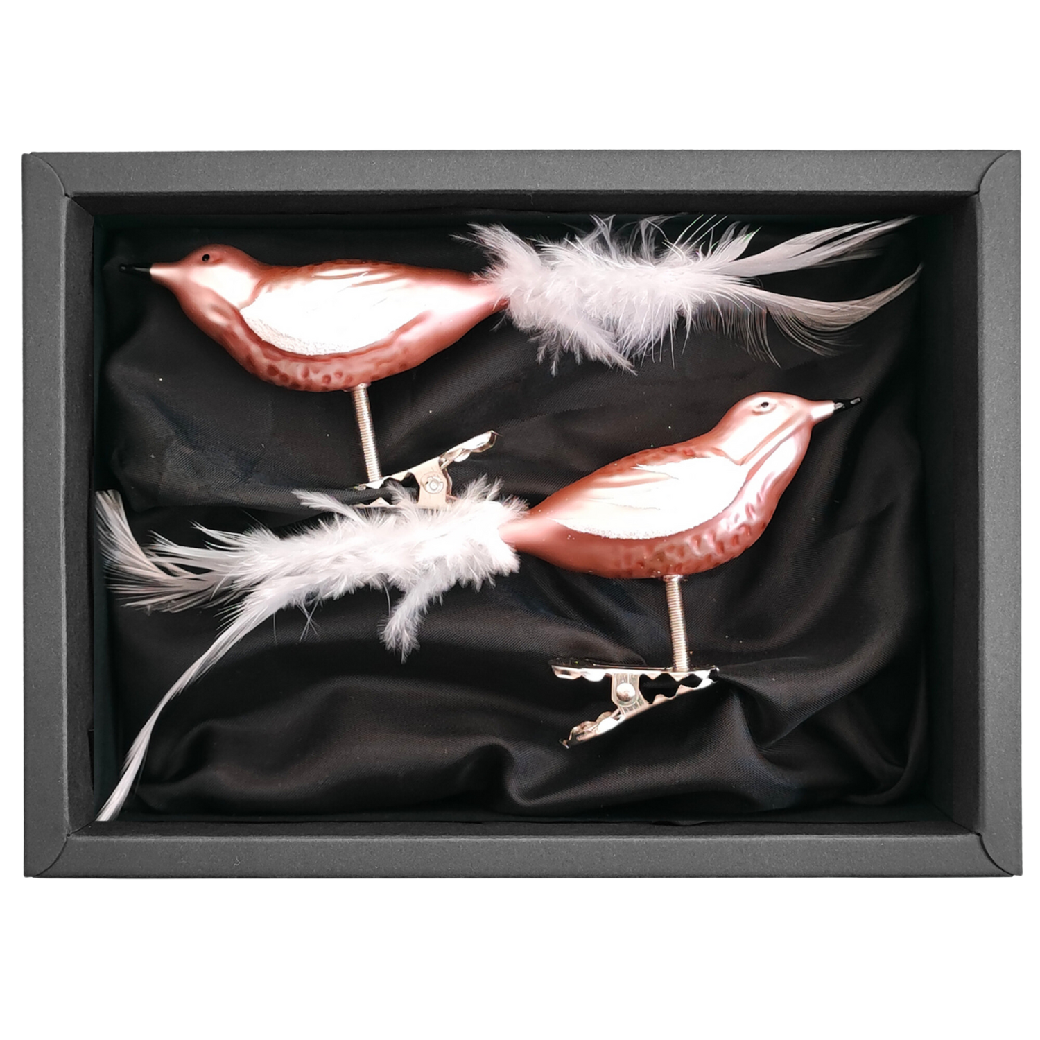 Dieses Set, bestehend aus zwei Vögelchen in einem zarten Rosé-Ton, darf an deinen Weihnachtsbaum nicht fehlen. Die Vögelchen runden den Look des Baumes ab und setzen ein weiteres Highlight.