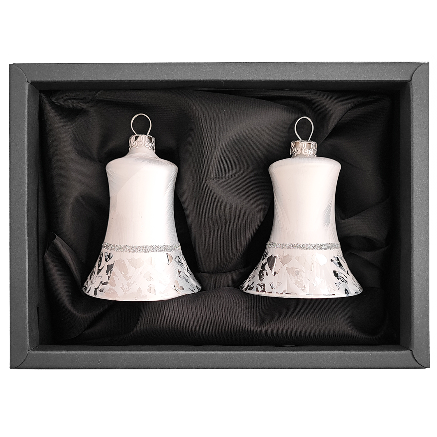 Dieses Glocken-Set besteht aus zwei 5 cm großen Glocken in weißem icing Design. Sie zaubern dir einen kleinen eisigen Touch an deinen Weihnachtsbaum.