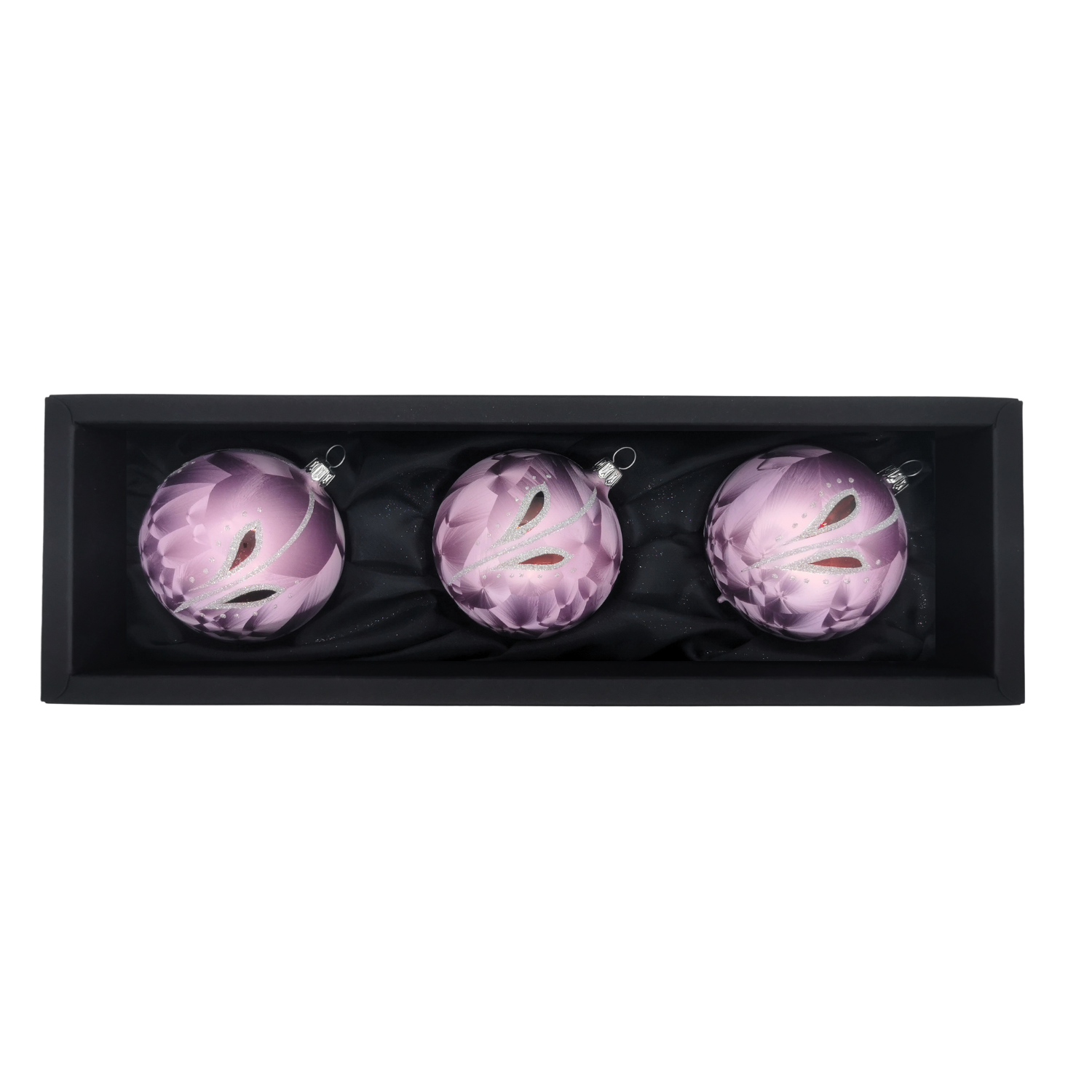 Dieses Set besteht aus 3 Kugeln à 8 cm. Sie strahlt eine pure Eleganz aus. „Snow Princess“ ist in einem matten Rose Icing-Design. Ihre prachtvollen Tropfen schmücken in einem glänzenden Rot die Oberfläche